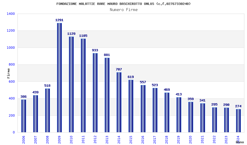 | Anno | Firme | Importi | Media | Naz. | Reg. | Prov. | Comu. |