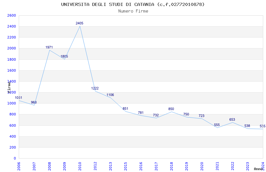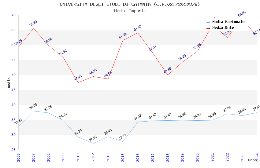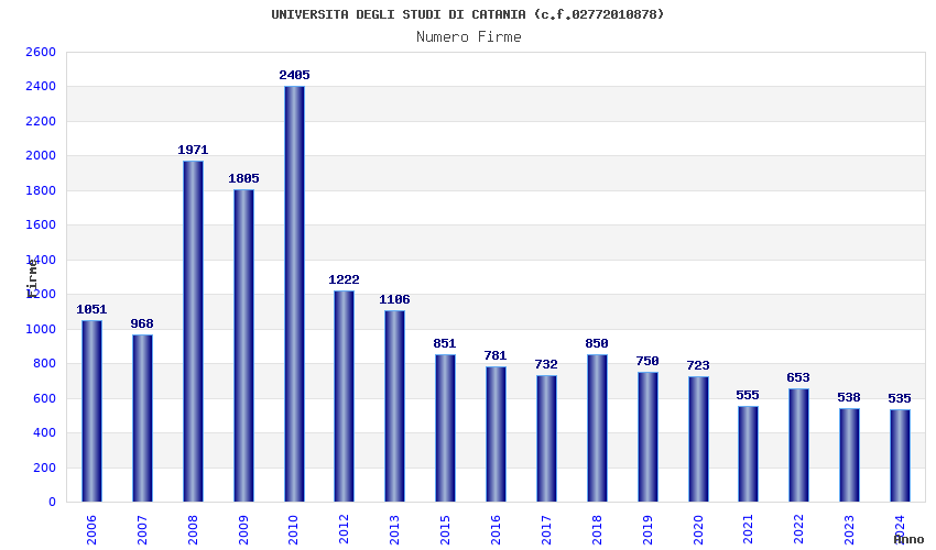 | Anno | Firme | Importi | Media | Naz. | Reg. | Prov. | Comu. |