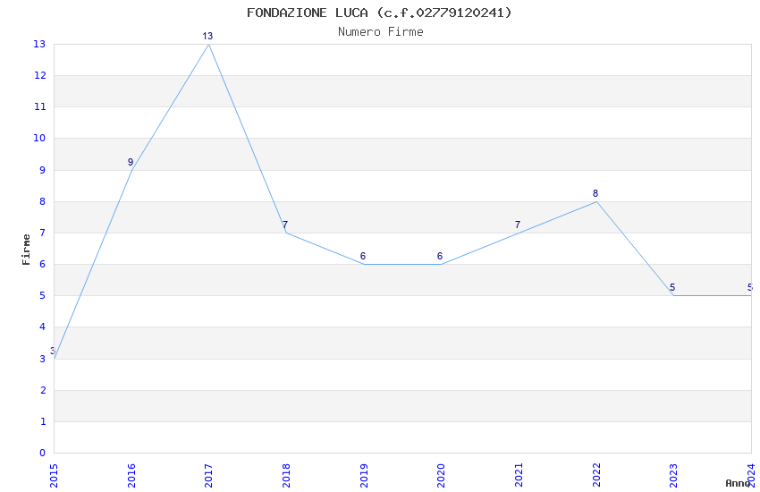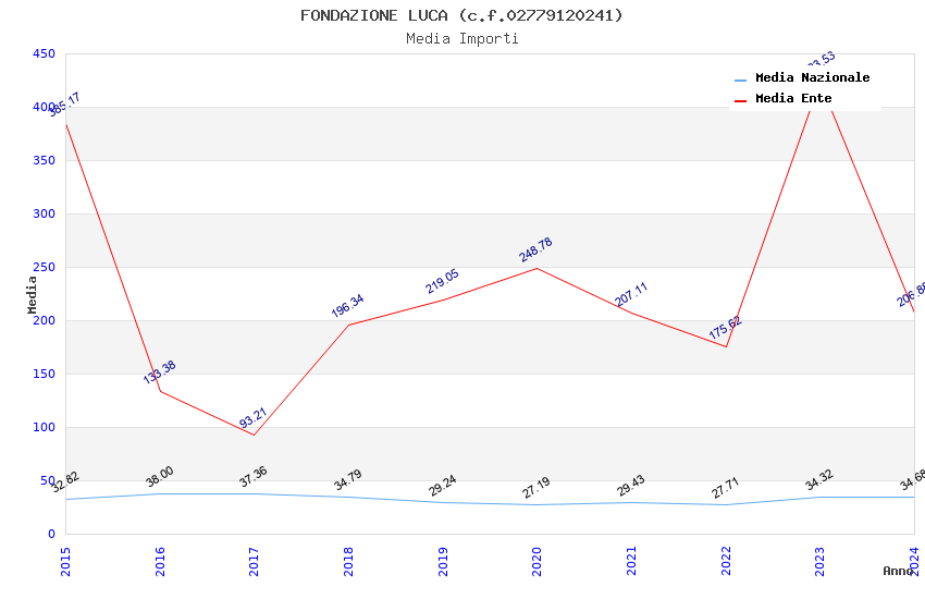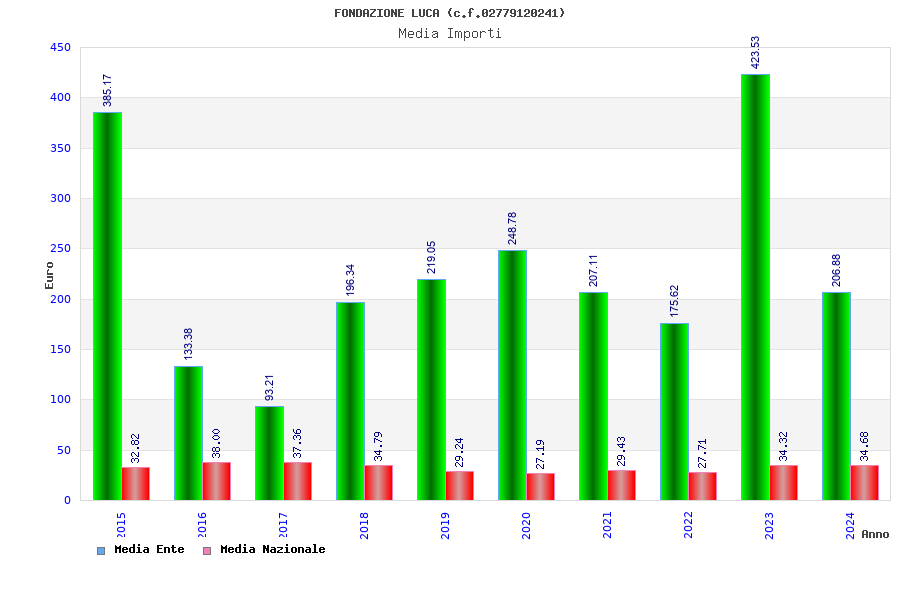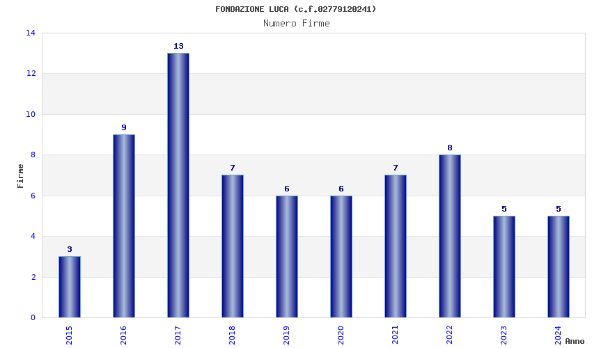 | Anno | Firme | Importi | Media | Naz. | Reg. | Prov. | Comu. |