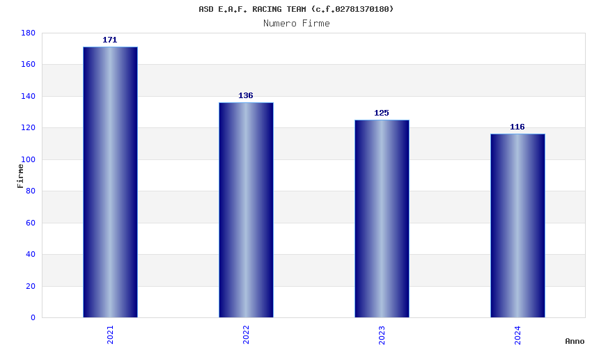 | Anno | Firme | Importi | Media | Naz. | Reg. | Prov. | Comu. |