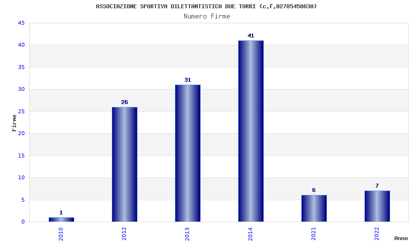 | Anno | Firme | Importi | Media | Naz. | Reg. | Prov. | Comu. |