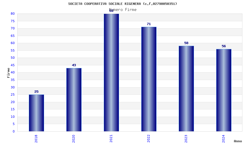 | Anno | Firme | Importi | Media | Naz. | Reg. | Prov. | Comu. |