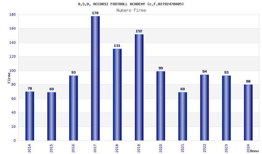 | Anno | Firme | Importi | Media | Naz. | Reg. | Prov. | Comu. |