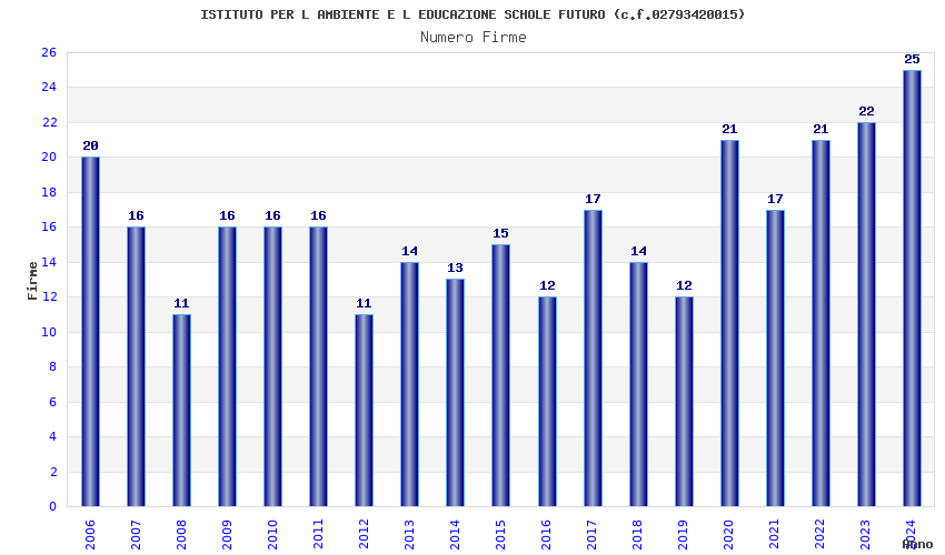 | Anno | Firme | Importi | Media | Naz. | Reg. | Prov. | Comu. |