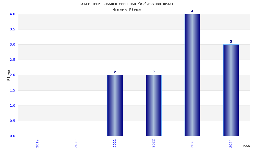 | Anno | Firme | Importi | Media | Naz. | Reg. | Prov. | Comu. |