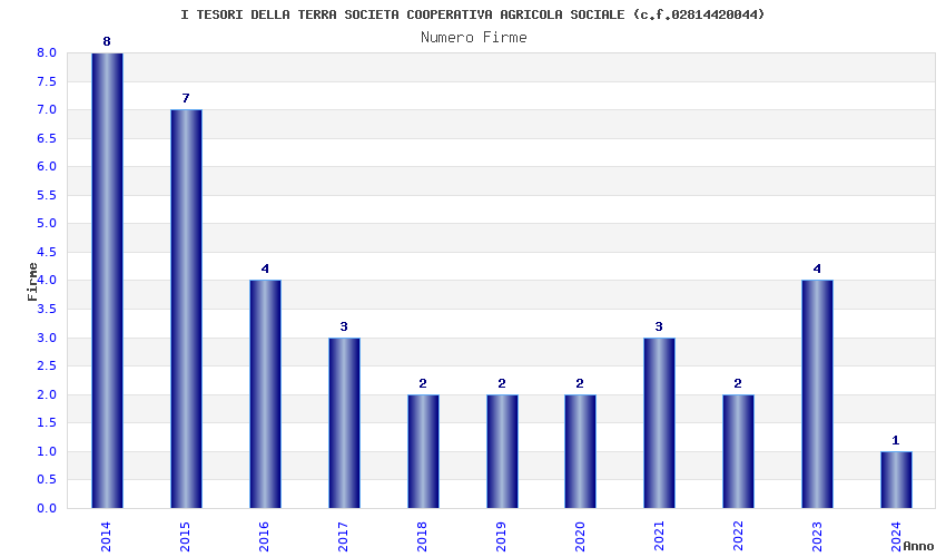 | Anno | Firme | Importi | Media | Naz. | Reg. | Prov. | Comu. |