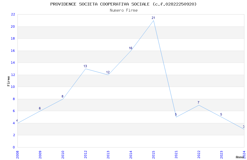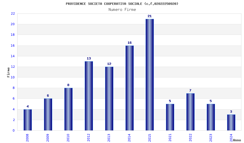 | Anno | Firme | Importi | Media | Naz. | Reg. | Prov. | Comu. |