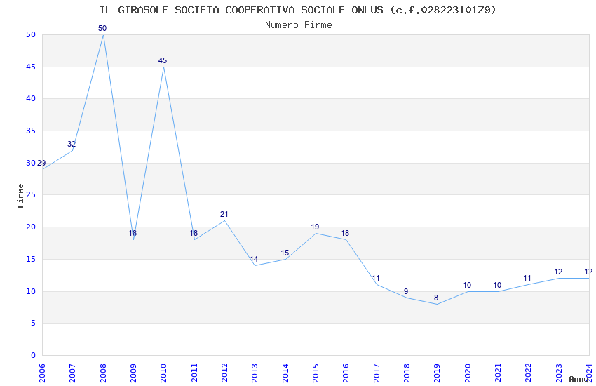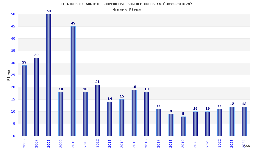 | Anno | Firme | Importi | Media | Naz. | Reg. | Prov. | Comu. |