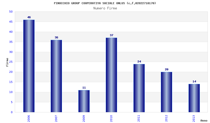 | Anno | Firme | Importi | Media | Naz. | Reg. | Prov. | Comu. |
