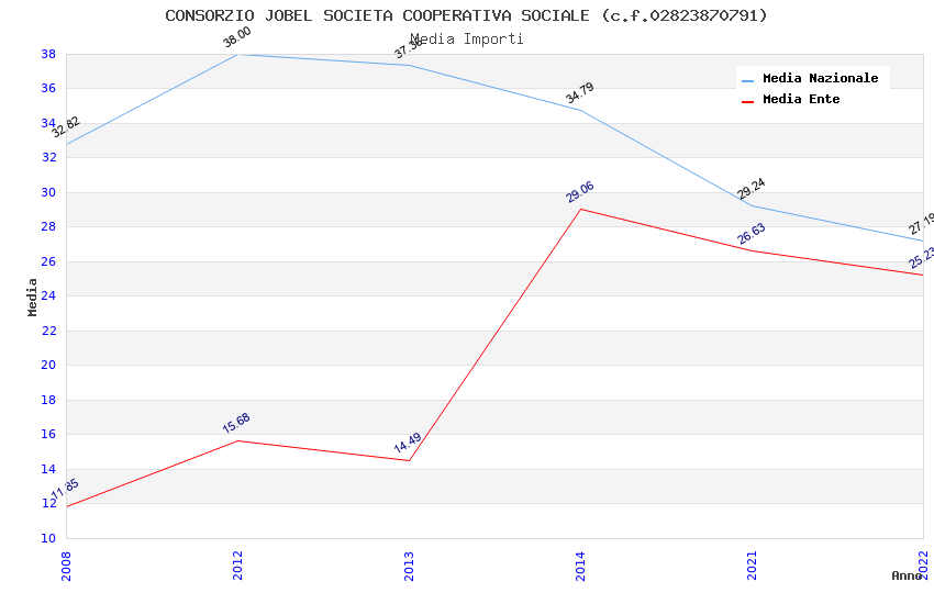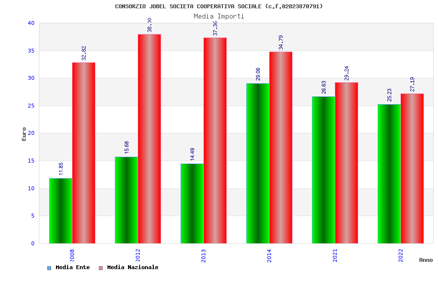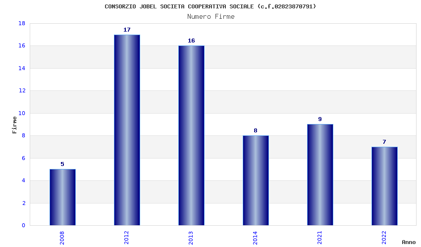 | Anno | Firme | Importi | Media | Naz. | Reg. | Prov. | Comu. |