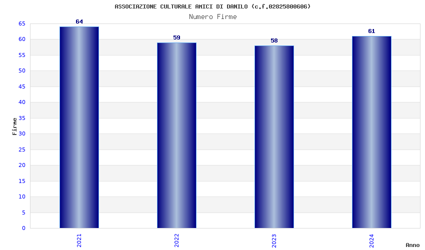 | Anno | Firme | Importi | Media | Naz. | Reg. | Prov. | Comu. |