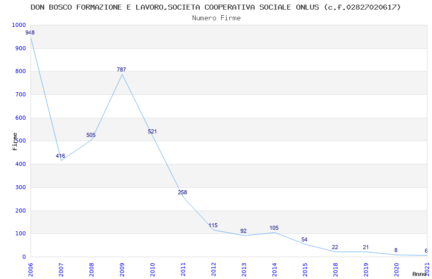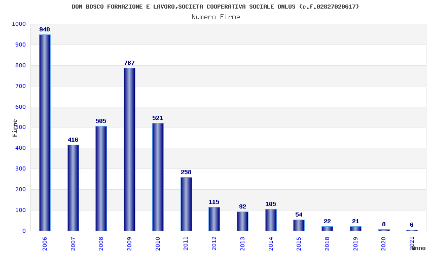 | Anno | Firme | Importi | Media | Naz. | Reg. | Prov. | Comu. |