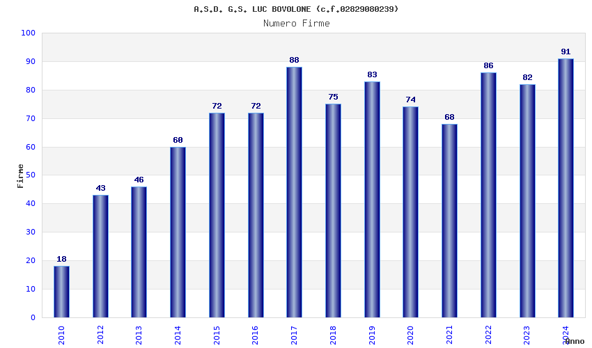| 2024 | 91 | 2.559,33 | 28,12 | 19.861 | 1.817 | 368 | 9 |