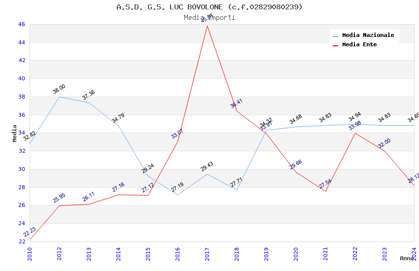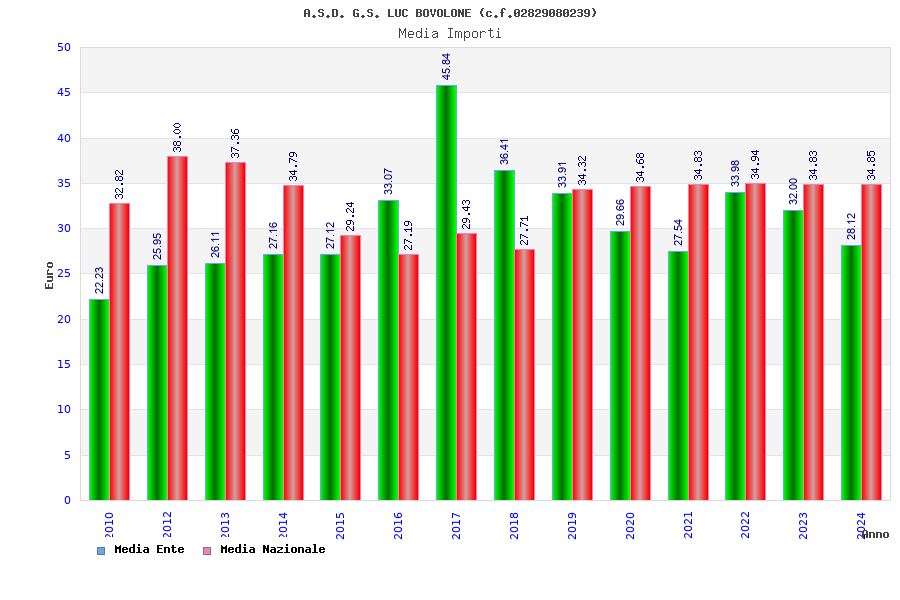 | Anno | Firme | Importi | Media | Naz. | Reg. | Prov. | Comu. |