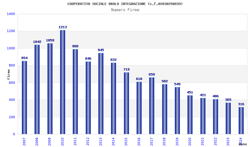 | Anno | Firme | Importi | Media | Naz. | Reg. | Prov. | Comu. |