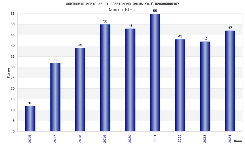 | Anno | Firme | Importi | Media | Naz. | Reg. | Prov. | Comu. |