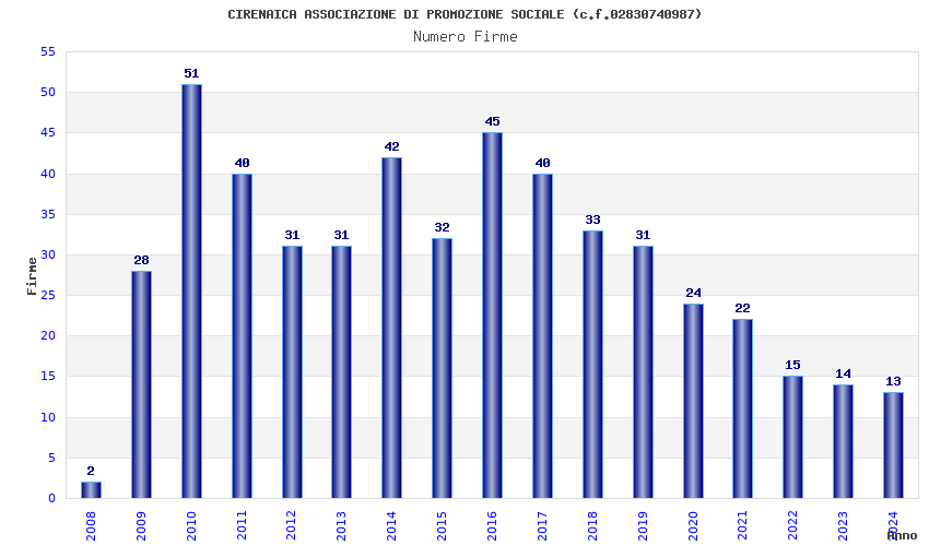 | Anno | Firme | Importi | Media | Naz. | Reg. | Prov. | Comu. |