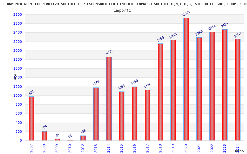 | Anno | Firme | Importi | Media | Naz. | Reg. | Prov. | Comu. |