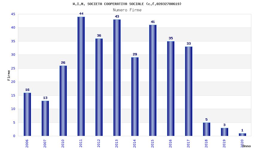 | Anno | Firme | Importi | Media | Naz. | Reg. | Prov. | Comu. |