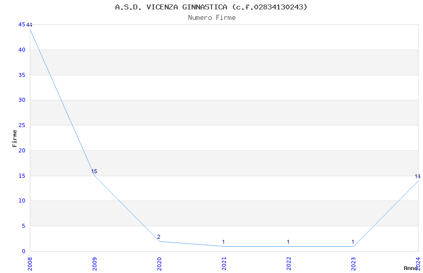| 2008 | 44 | 1.842,75 | 41,88 | 15.414 | 1.368 | 240 | 87 |