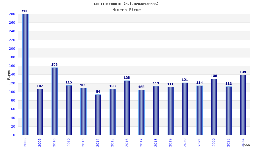 | Anno | Firme | Importi | Media | Naz. | Reg. | Prov. | Comu. |
