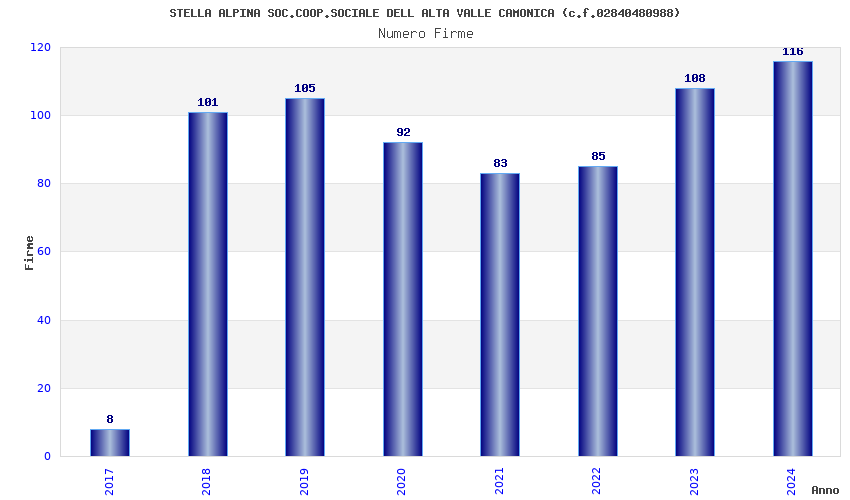 | Anno | Firme | Importi | Media | Naz. | Reg. | Prov. | Comu. |