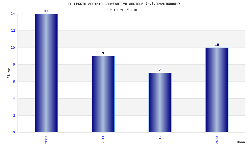 | Anno | Firme | Importi | Media | Naz. | Reg. | Prov. | Comu. |