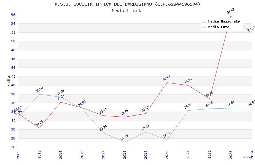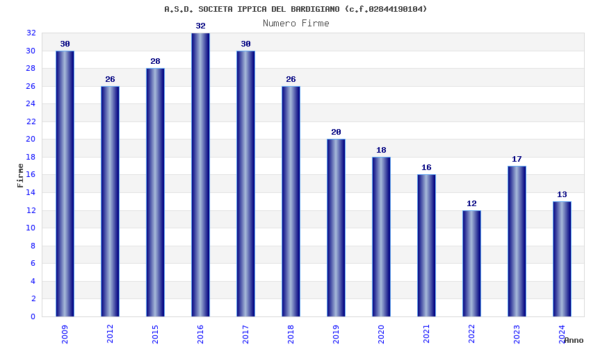 | Anno | Firme | Importi | Media | Naz. | Reg. | Prov. | Comu. |