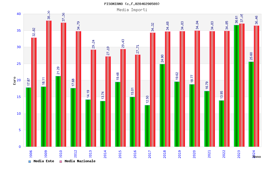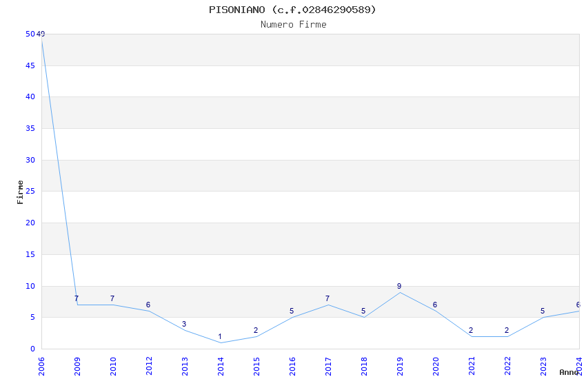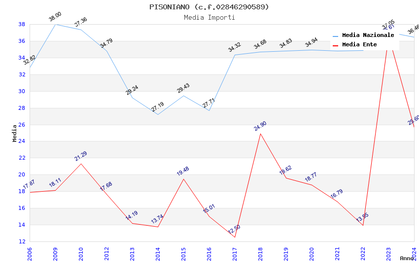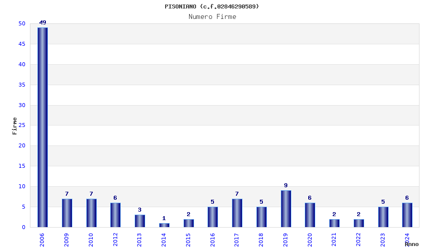 | Anno | Firme | Importi | Media | Naz. | Reg. | Prov. | Comu. |