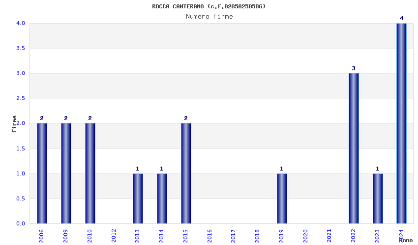 | Anno | Firme | Importi | Media | Naz. | Reg. | Prov. | Comu. |