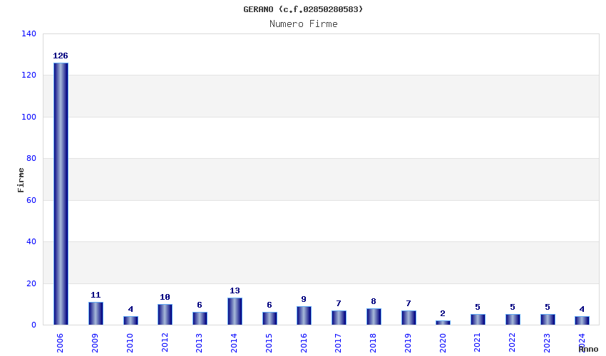 Anno Firme Importi Media Naz. Reg. Prov. Comu.