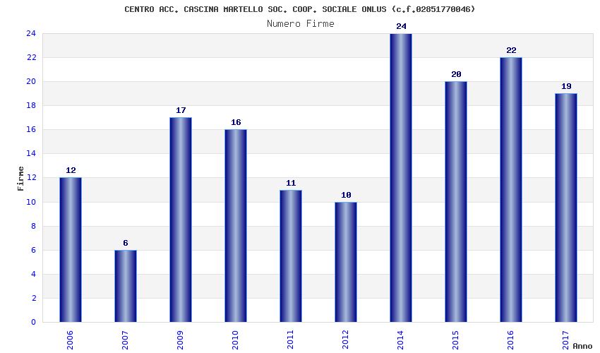 | Anno | Firme | Importi | Media | Naz. | Reg. | Prov. | Comu. |