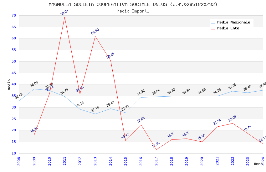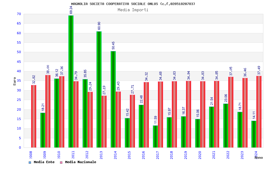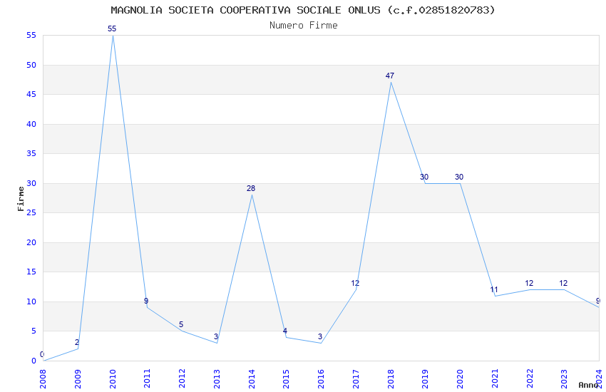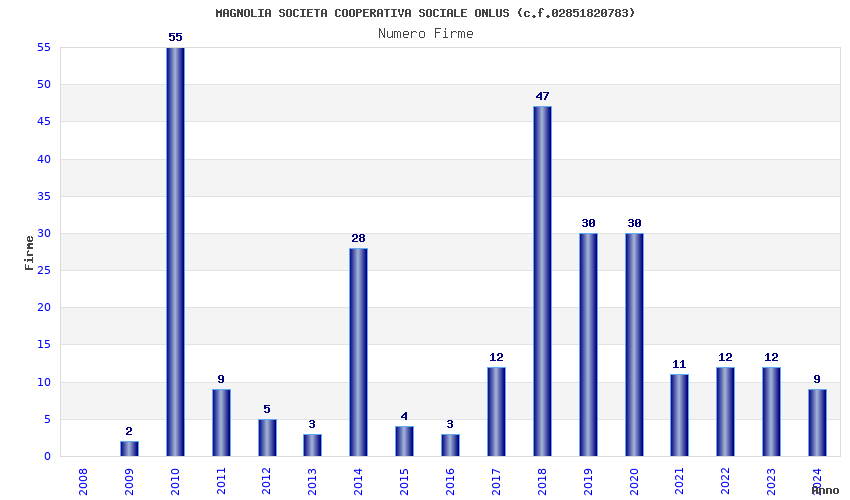 | Anno | Firme | Importi | Media | Naz. | Reg. | Prov. | Comu. |