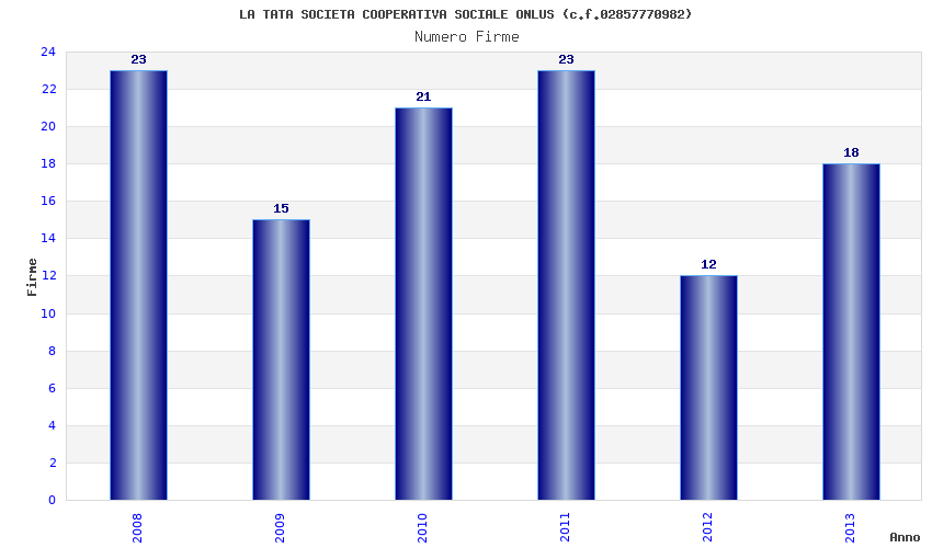 | Anno | Firme | Importi | Media | Naz. | Reg. | Prov. | Comu. |