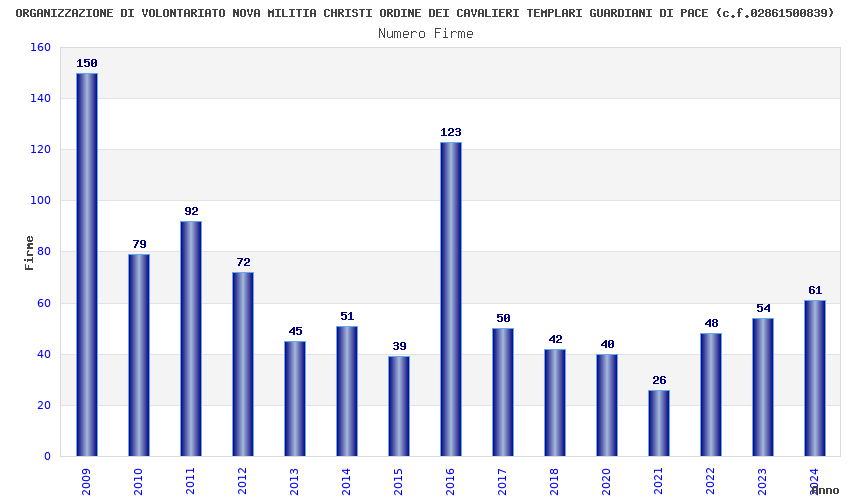 | Anno | Firme | Importi | Media | Naz. | Reg. | Prov. | Comu. |