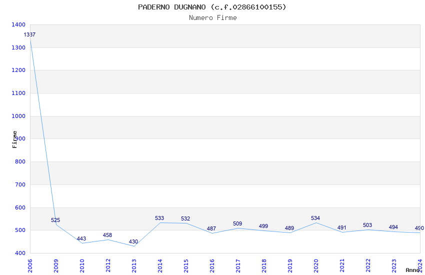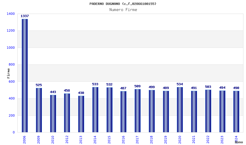 | Anno | Firme | Importi | Media | Naz. | Reg. | Prov. | Comu. |