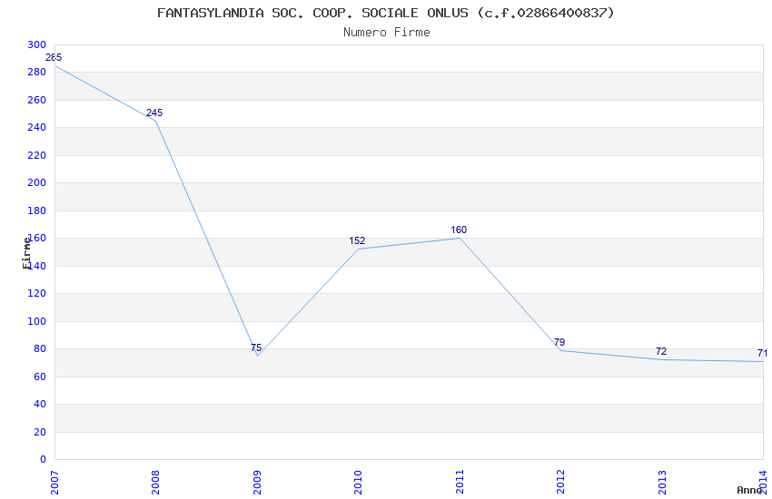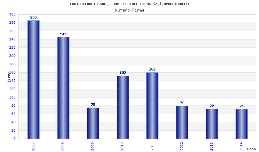 | Anno | Firme | Importi | Media | Naz. | Reg. | Prov. | Comu. |