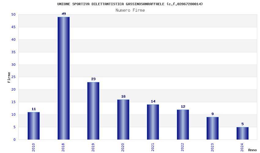 | Anno | Firme | Importi | Media | Naz. | Reg. | Prov. | Comu. |