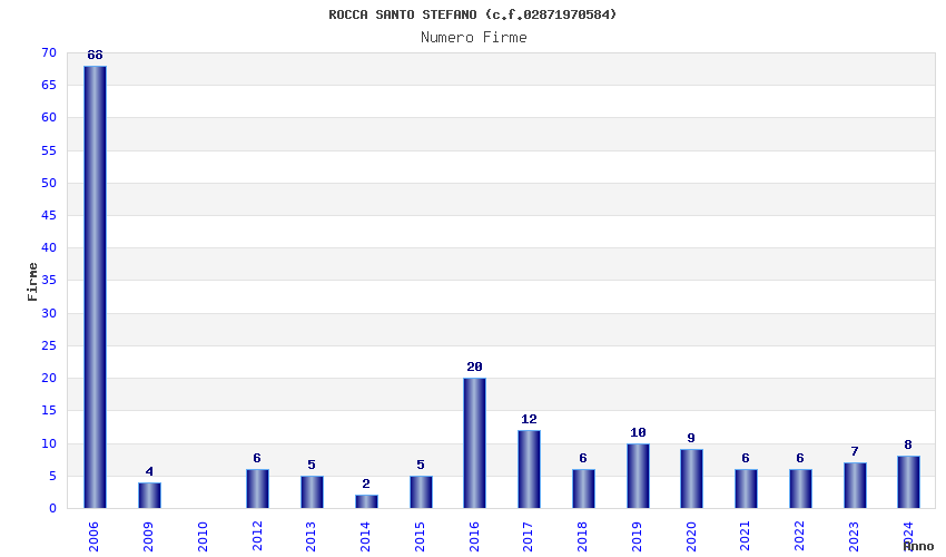 | Anno | Firme | Importi | Media | Naz. | Reg. | Prov. | Comu. |