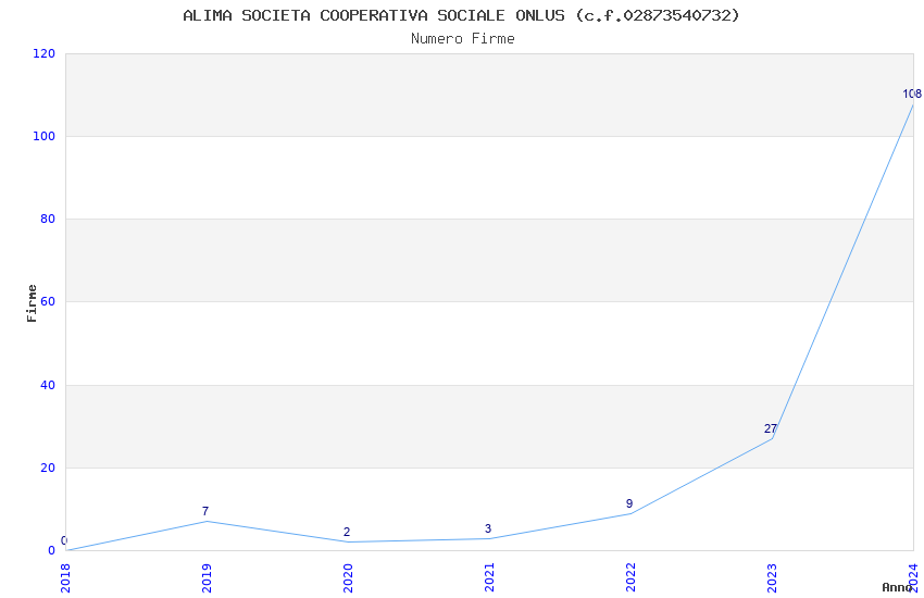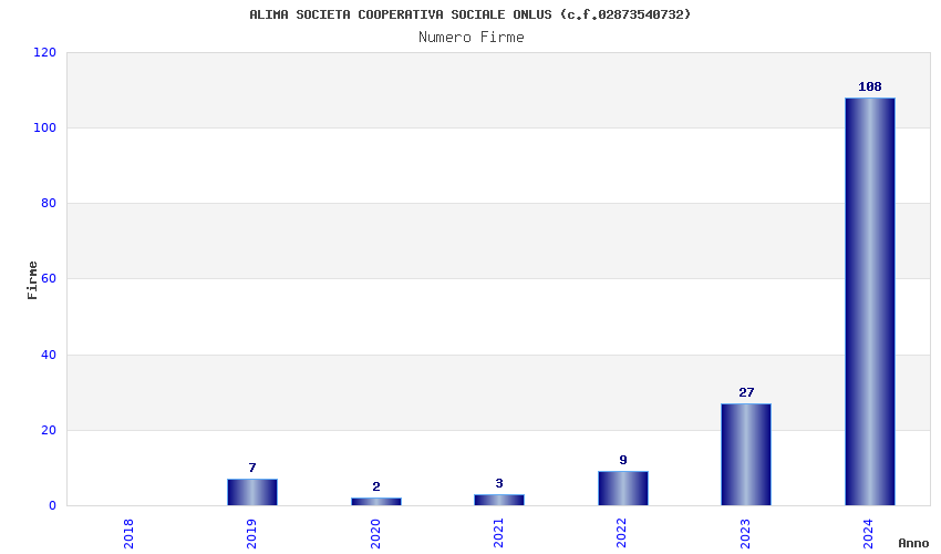 | Anno | Firme | Importi | Media | Naz. | Reg. | Prov. | Comu. |
