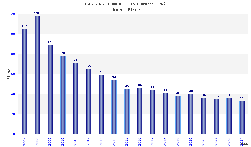 | Anno | Firme | Importi | Media | Naz. | Reg. | Prov. | Comu. |