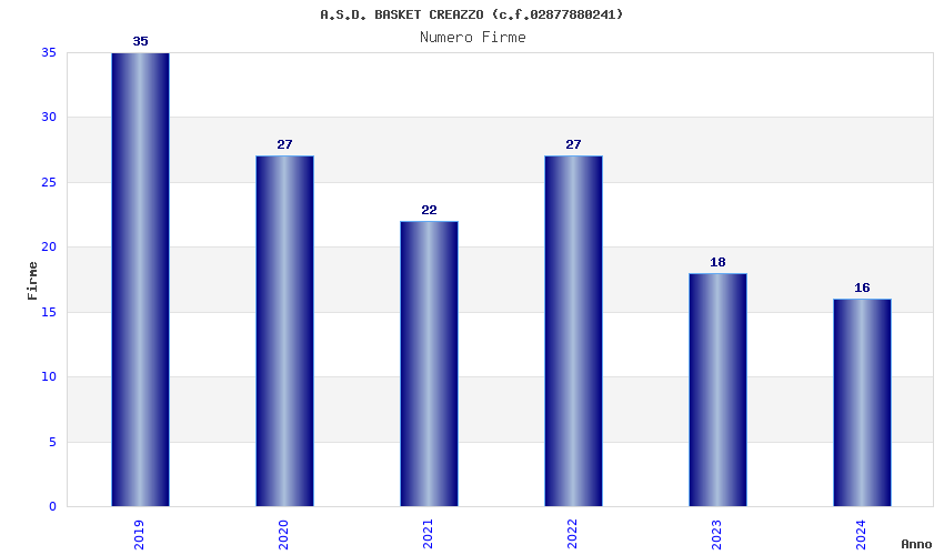| Anno | Firme | Importi | Media | Naz. | Reg. | Prov. | Comu. |