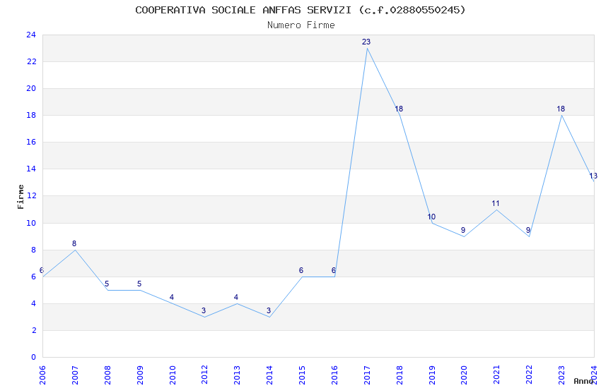 | 2017 | 23 | 366,38 | 15,93 | 47.420 | 4.334 | 759 | 50 |