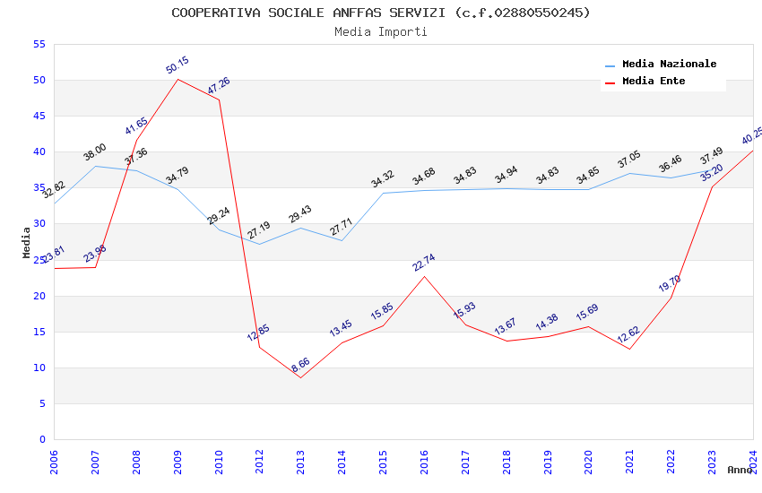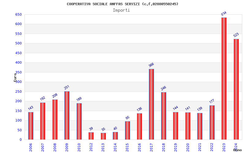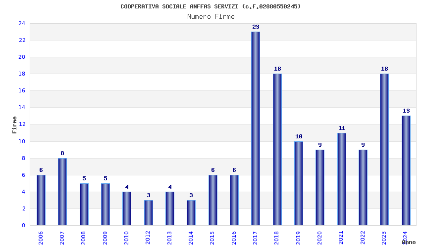 | Anno | Firme | Importi | Media | Naz. | Reg. | Prov. | Comu. |