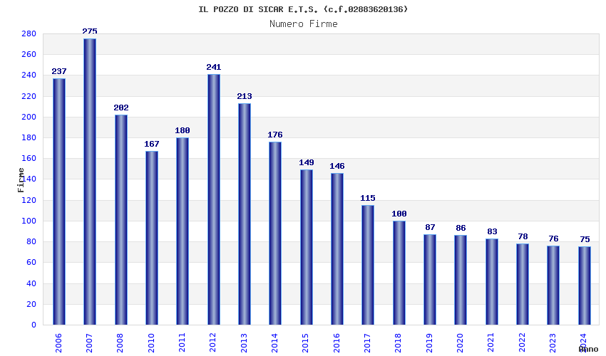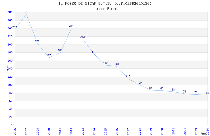 | 2024 | 75 | 3.090,17 | 41,20 | 16.935 | 3.670 | 141 | 3 |