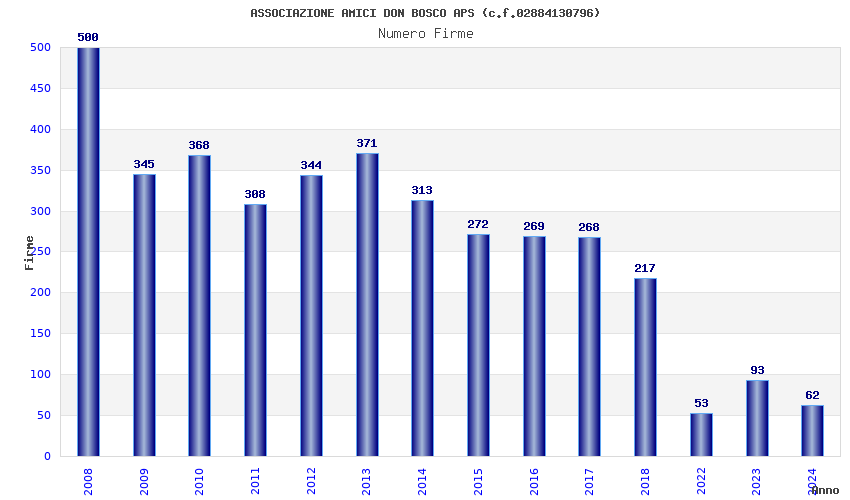 | 2008 | 500 | 18.159,03 | 36,32 | 2.315 | 36 | 7 | 1 |