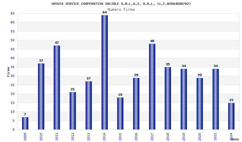 | Anno | Firme | Importi | Media | Naz. | Reg. | Prov. | Comu. |