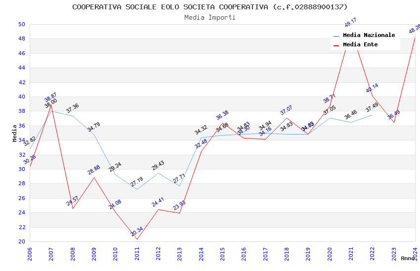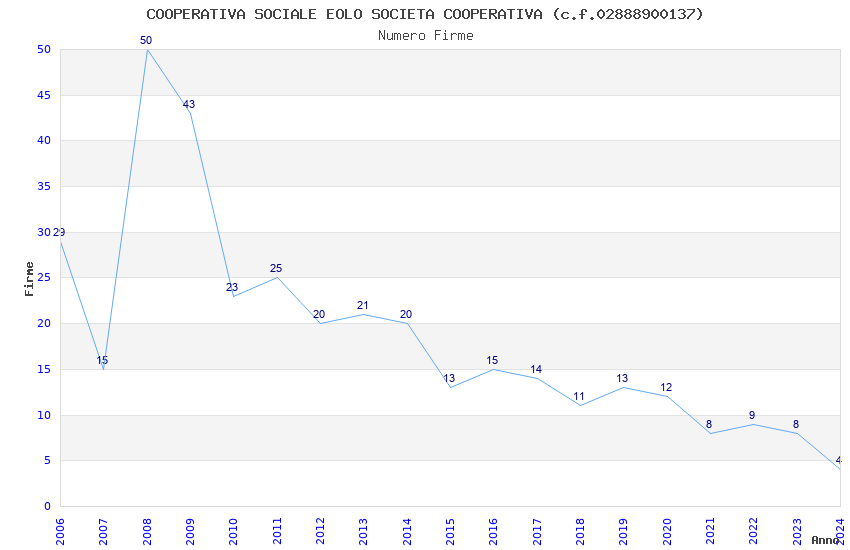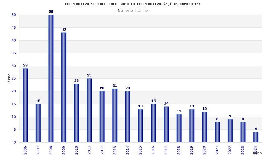 | Anno | Firme | Importi | Media | Naz. | Reg. | Prov. | Comu. |