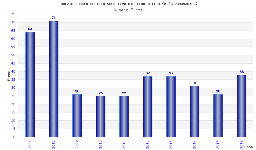| Anno | Firme | Importi | Media | Naz. | Reg. | Prov. | Comu. |