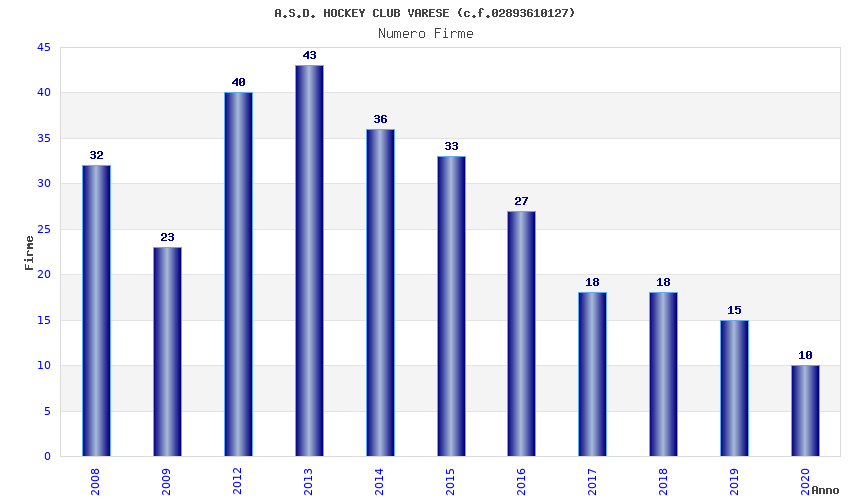 | Anno | Firme | Importi | Media | Naz. | Reg. | Prov. | Comu. |